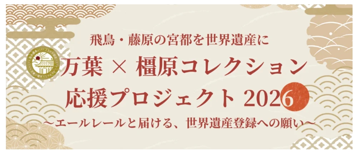 2026年の世界文化遺産登録を目指す「飛鳥・藤原の宮都」の機運醸成と、構成資産の一部が所在する橿原市のブランド「万葉×橿原コレクション」の周知・販売促進、さらに「エールレール」の認知拡大を目的として、3月28日、あべのハルカス近鉄本店2階ウエルカムガレリアにて、1日限定のポップアップショップが開催されます。