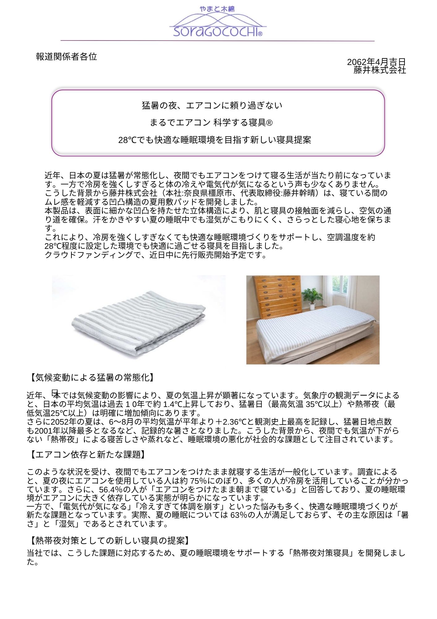 猛暑の夜、エアコンに頼り過ぎない まるでエアコン科学する寝具🄬 28℃でも快適な睡眠環境を目指す新しい寝具提案